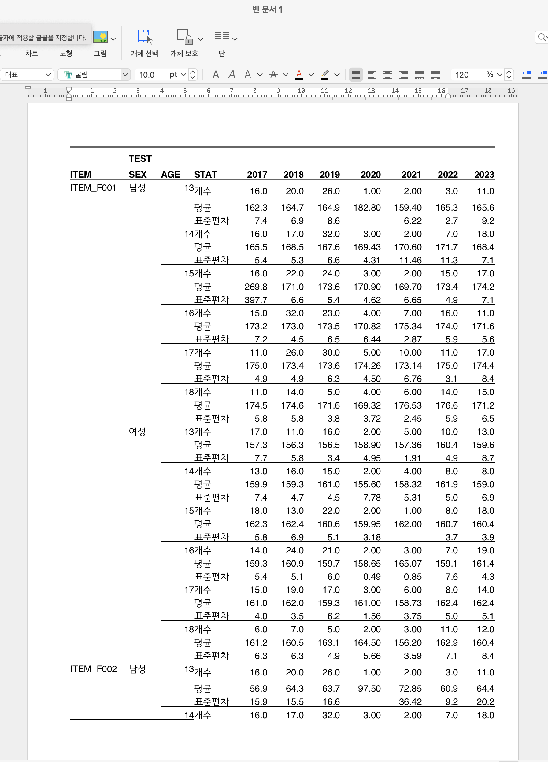 보고서 수준의 고품질 통계표를 출력 가능.